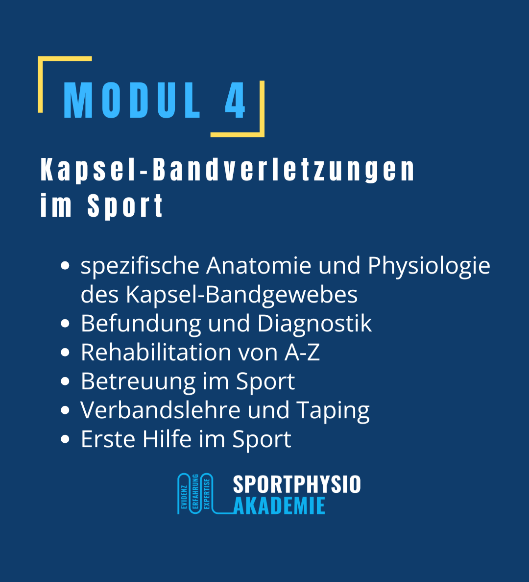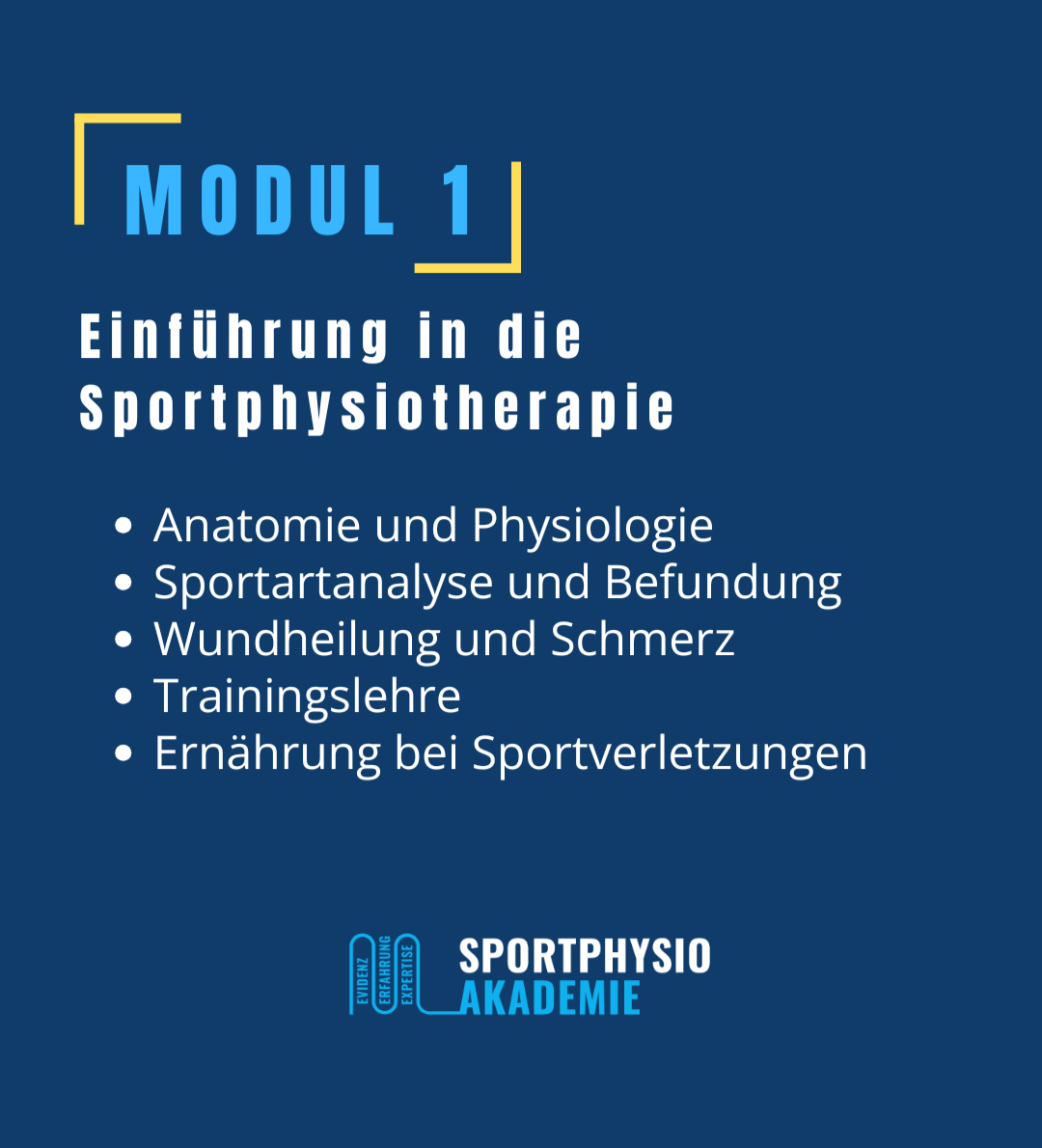 Die Ausbildung deckt die gesamte Bandbreite der Sportphysiotherapie ab – von Sportmedizin über Therapie und Training bis zu Regeneration, Kommunikation und Entscheidungsfindung. Dabei steht nicht die Methode im Vordergrund, sondern der sinnvolle Einsatz unterschiedlicher Maßnahmen.